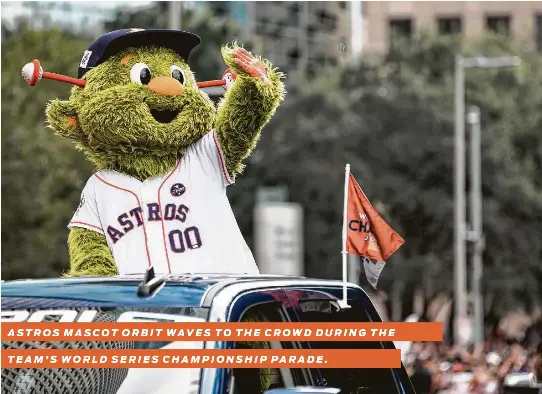 HOUSTON If theres anything sports fans might love and adore more than the team itself or a favorite player its the teams furry mascot. 2018-04-13 - BY CRAIG HLAVATY Guys in form-fitting spandex suits making fabulous trick.